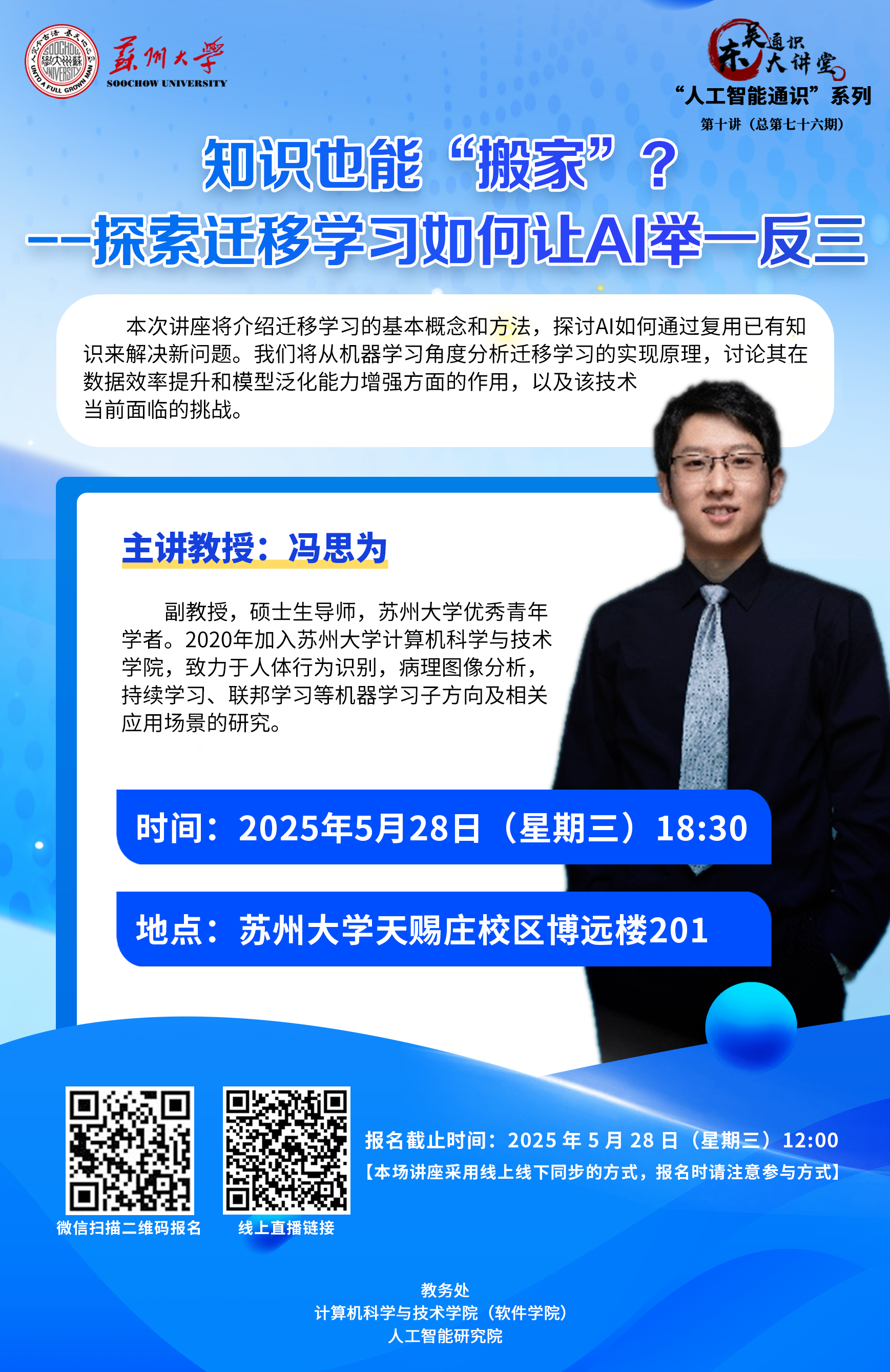 東吳通識(shí)大講堂“人工智能通識(shí)”系列 第十講(總第七十六期):知識(shí)也能“搬家”?——探索遷移學(xué)習(xí)如何讓AI舉一反三