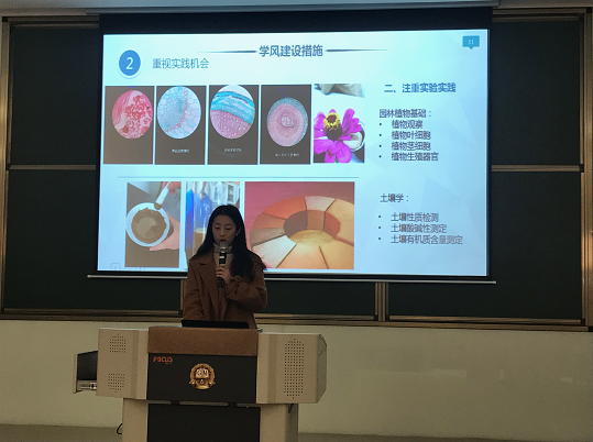 首先匯報的是2017級城鄉規劃班,從鼓勵同學參加科研項目、學術競賽,完善內部考勤制度,組織團建活動提升凝聚力等方面介紹了本班在學風建設方面做出的努力,并展示了本班課程出勤、作業質量、獲獎狀況、學習氛圍等情況。隨后其他班級依次展開匯報,各顯神通,各有精彩,例如15園林班建立班級交流群、微信公眾號線上交流學習;16規劃班建立班委“責任制”,“生日委員”定期組織聚會送祝福,提升班級凝聚力;17建筑一班建立學習資料共享機制,推動學習小組交流互助;16建筑二班通過思想引領,指定職業生涯規劃,發揮榜樣示范作用;17園林一班把班級大事記做成一本書的形式,回憶了班級取得平均績點3.58背后的點滴;15城規班從班級“規”、“合”、“聯”、“創”四個方面發力,學風促團建,助力班級榮獲江蘇省先進班集體、蘇州市五四紅旗團支部等榮譽。