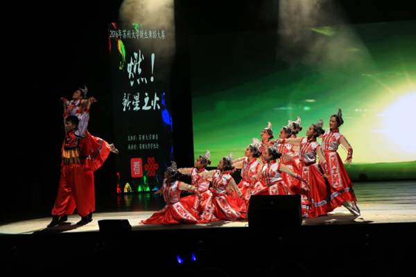 10月30日晚,2016年我校新生舞蹈大賽在獨墅湖影劇院舉行。本次新生舞蹈大賽以“燃!新星之火”作主題,旨在展現當代青年愛國新方式,將時代新氣象與校園文化相結合,讓愛國主義的當代價值更加凸顯。新生舞蹈大賽作為我校校園文化建設中極具影響力的品牌活動,承載著一屆屆蘇大人的青春之火,它充分展示了蘇大學子拼搏向上的精神風貌,是校園文化不可或缺的部分。