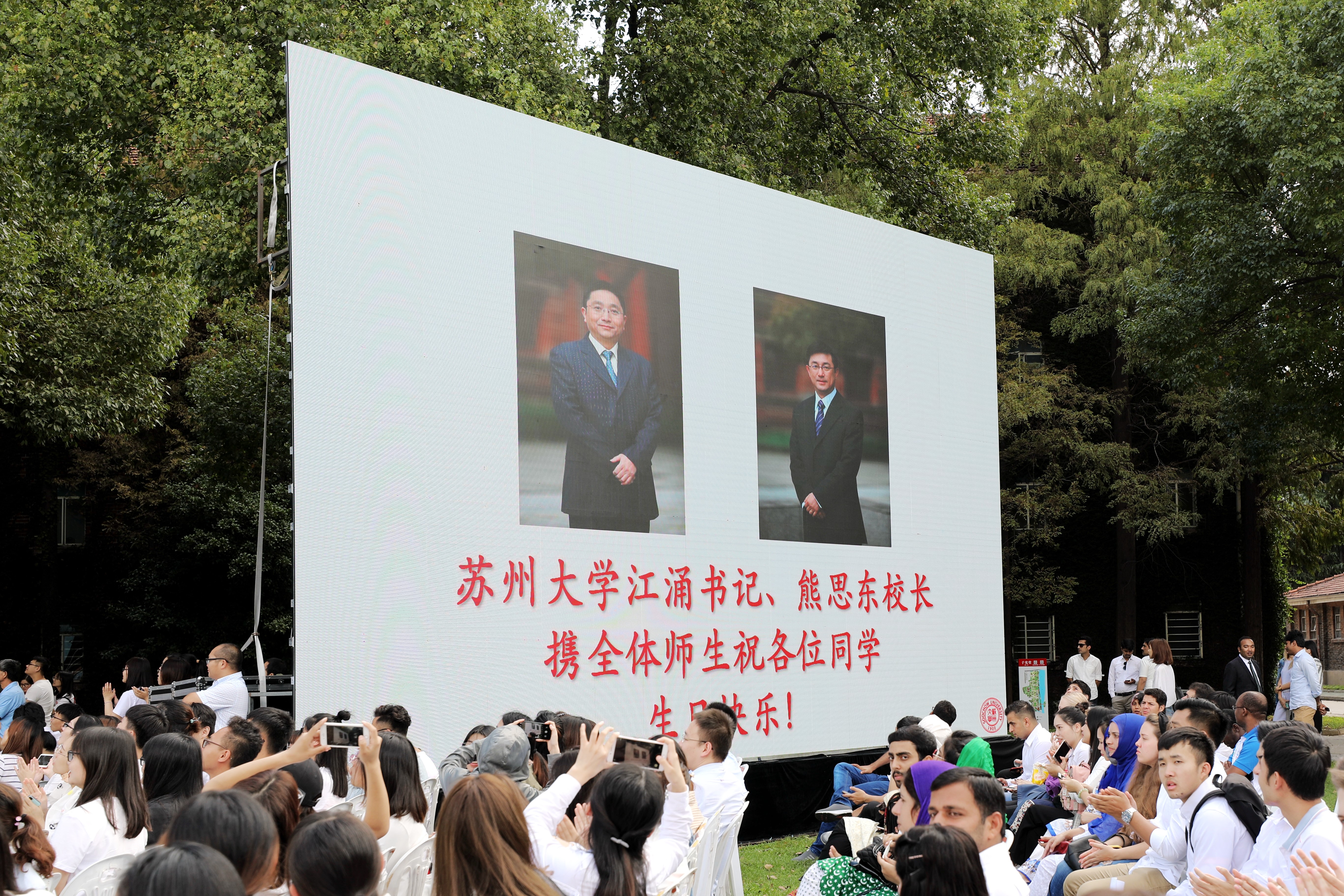 藍(lán)天白云,紅瓦綠蔭。9月25日上午,11884位蘇州大學(xué)2018級新同學(xué)翹首以待,在天賜莊校區(qū)鐘樓南草坪迎來了一場簡樸而隆重的開學(xué)典禮。