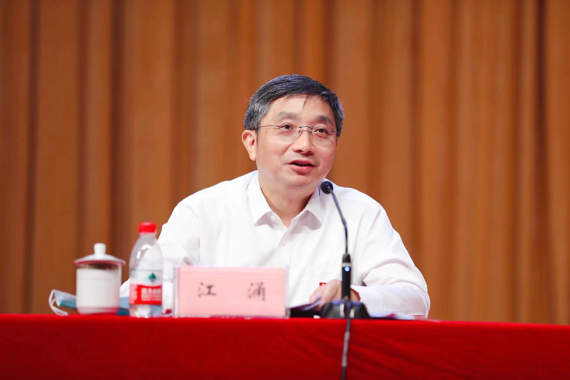 江涌表示堅決擁護省委的決定,服從組織安排。他對熊思東校長為學校改革發展事業所付出的辛勤汗水和作出的重要貢獻表示衷心感謝,對姜建明同志、周高同志為學校事業發展所作的大量工作表示衷心感謝,對新一屆領導班子表示祝賀。他回顧了自己30多年來在蘇大學習工作的感想感受,感謝組織的信任培養以及全校師生的幫助支持,表示能夠繼續服務師生、服務蘇大倍感榮幸,倍感光榮,倍感責任重大,接下來將與張曉宏校長一起,團結帶領新一屆領導班子,忠實履職盡責,扎實做好五個方面的工作,推進學校事業實現跨越式發展:一是堅定政治忠誠,努力成為社會主義政治家、教育家;二是完善立德樹人機制,培養時代新人;三是聚焦內涵式提升,推進學校高質量發展;四是堅持以師生為中心,增強廣大師生獲得感、幸福感、安全感;五是推進全面從嚴治黨,營造良好政治生態。他表示,全校師生將以習近平新時代中國特色社會主義思想為指導,在省委、省政府的堅強領導以及市委、市政府的大力支持下,在新的領導班子成員積極配合下,在全校師生的共同努力下,蘇州大學一定能不負眾望、不辱使命,在新征程上早日建成國內一流、國際知名高水平研究型大學,為譜寫“強富美高”新江蘇現代化建設新篇章貢獻蘇大力量,以優異成績迎接黨的二十大勝利召開!