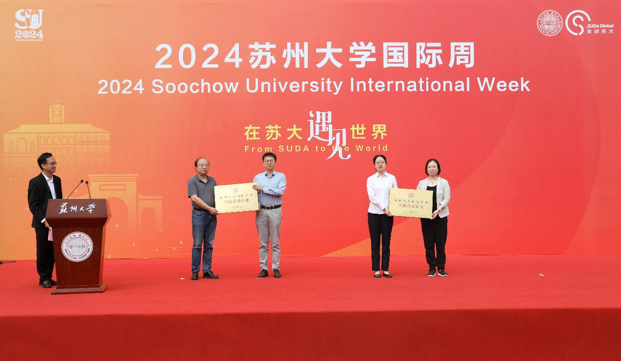 為增強國際學生對中國國情的認知,促進文化交流和理解,我校與吳文化博物館、市規劃展示館合作建立“蘇州大學國際學生社會實踐基地”。開幕式上,我校海外教育學院院長夏駿和國際合作交流處副處長朱履驊為兩大基地授牌。