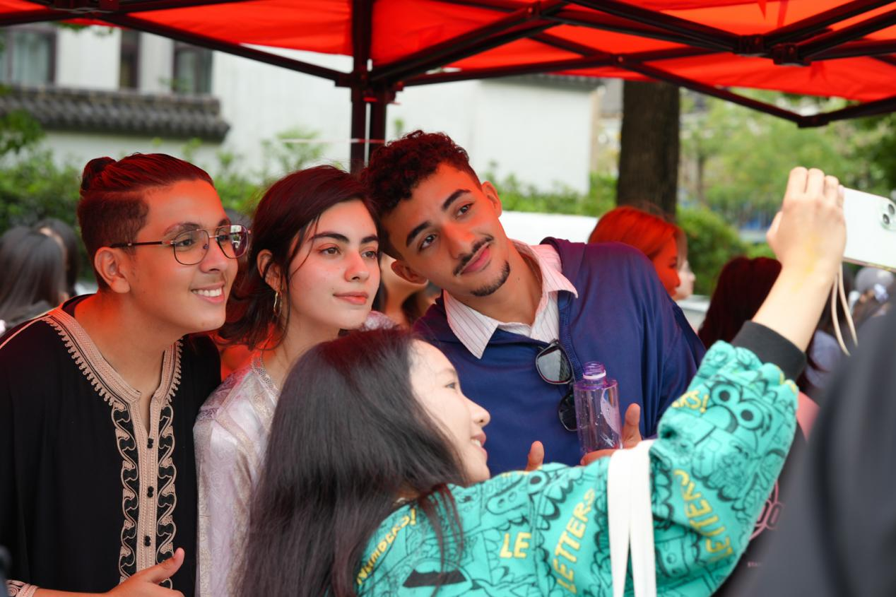 來自蘇州醫學院的馬來西亞留學生陳佳齊身著傳統娘惹服飾,開心地說道:“今天我認識了許多不同國家的朋友,在和他們的交流溝通中,我感受到了多元文化的交融與美好。”來自傳媒學院的2024級越南留學生黃氏翠銀第一次參加國際周的活動,難掩激動的心情:“各國美食都有獨特風味,非常感謝學校舉辦國際周的活動,讓我們能集中體驗到如此多元的國際文化。”