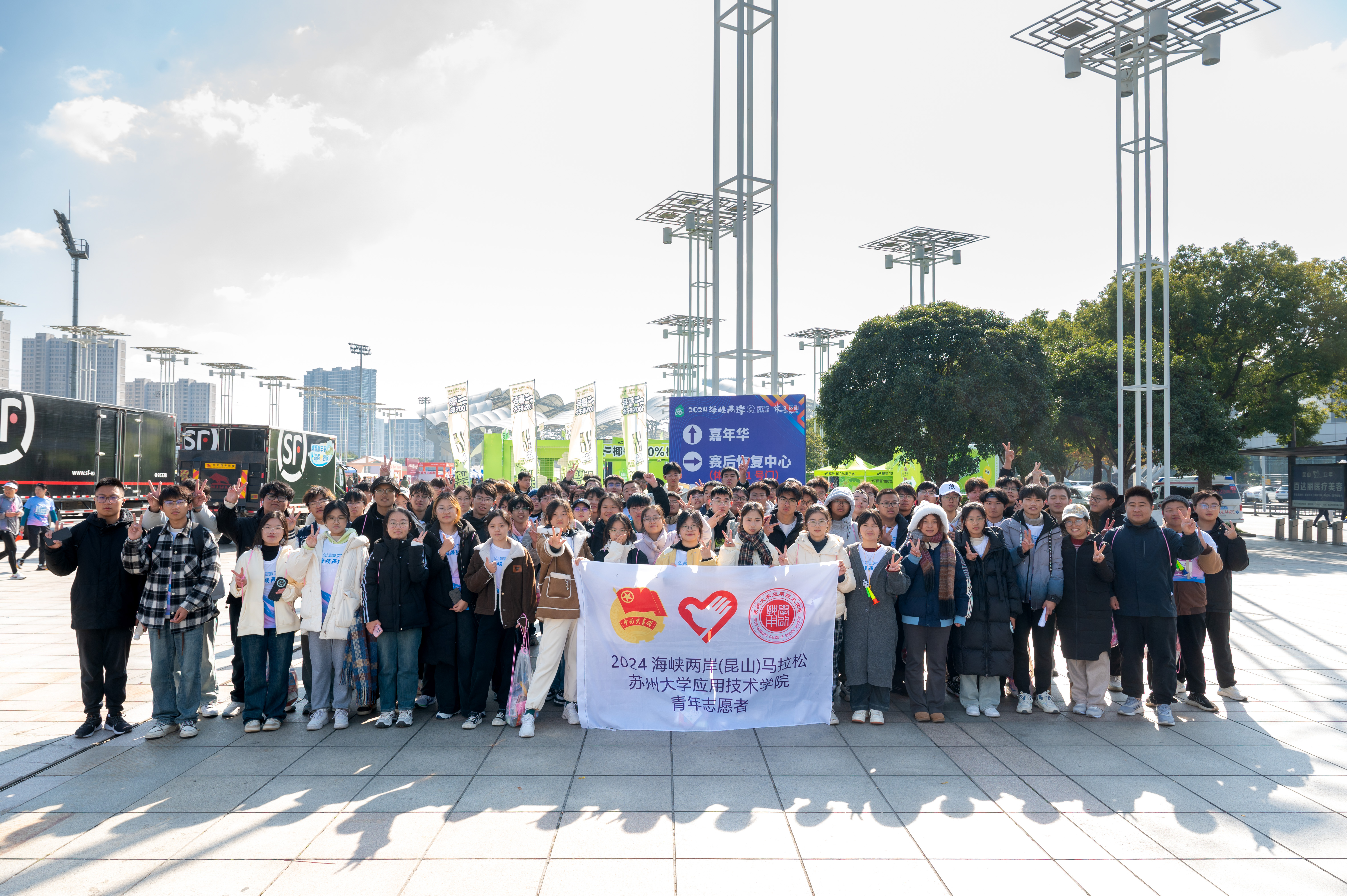 12月8日,2024海峽兩岸(昆山)馬拉松賽鳴槍開跑。本次比賽由昆山市人民政府主辦,賽事設置了馬拉松、半程馬拉松、歡樂跑三個項目,共有16000人參賽。我校應用技術學院組織了1400余名學生志愿者,以昂揚的姿態、飽滿的熱情、專業的服務,完成了比賽的各項志愿服務工作。